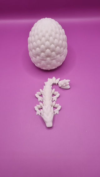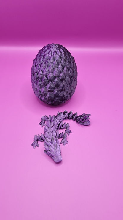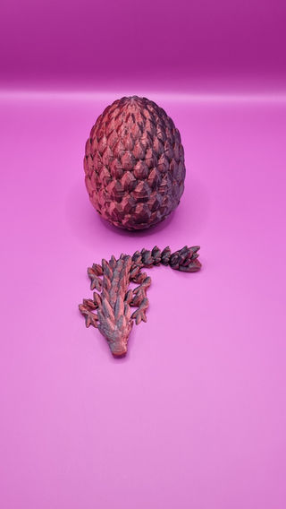 Discover the enchanting Scale Dragon and Egg, where you can Hatch your very own 3D printed Dragon from its Egg. This unique creation, crafted with precision and care, boasts stunning colour gradients that may vary, adding a personalized touch to each piece.